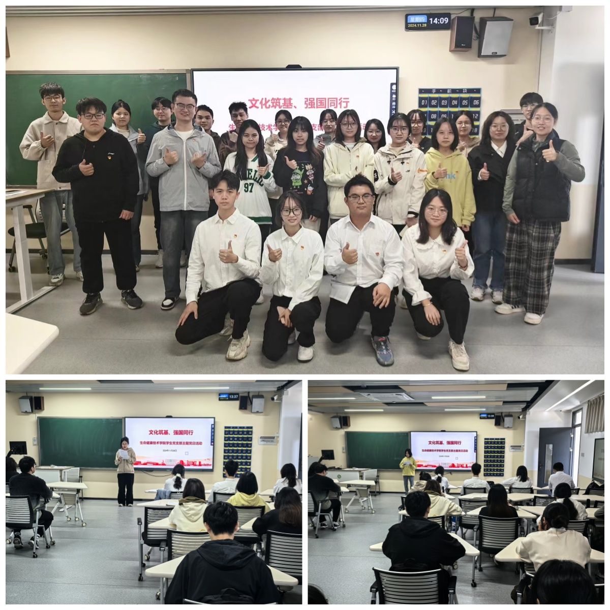 为进一步深入学习贯彻党的二十届三中全会精神,引导党员同志们深刻领会全会关于建设社会主义文化强国的重要部署,增强文化自信和文化自觉,公司员工党支部于11月28日在6C301开展“文化筑基 强国同行”主题党日活动。