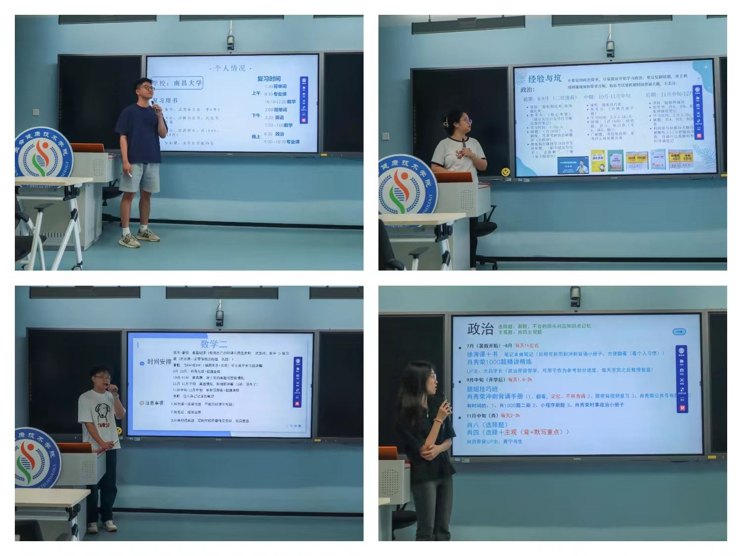 此次分享会邀请了陈少斌、马仁铭、龚佳鑫、林欣然4位2024届考研上岸同学介绍经验。他们分别考取暨南大学、南昌大学、汕头大学等国内知名院校。分享人从考研的心路历程、科目复习方法、时间规划技巧、心理调节建议等方面,分享了他们在考研过程中的心得体会和应对策略。他们的经验分享引起了在场员工的强烈共鸣,激发了同学们对考研的热情和信心。在分享后的互动环节,同学们踊跃提问,学长学姐耐心解答了每日计划制订、导师选择、面试准备等诸多与考研息息相关的问题。