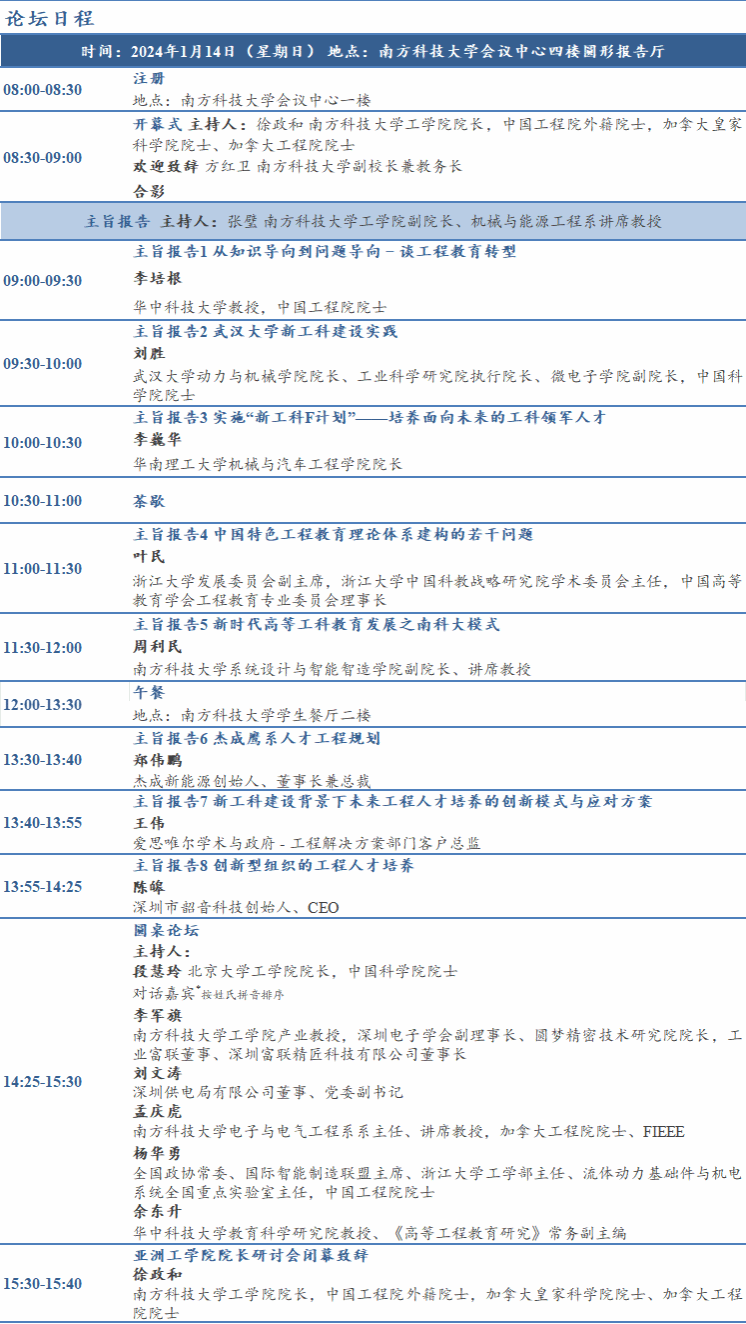 为了共同探索工程教育的新路径和分享教育经验,南方科技大学、新加坡工程院、浙江大学中国科教战略研究院以及国际工程教育中心(ICEE)于2024年1月14日联合举办亚洲工公司经理研讨会。本次研讨会作为全球工公司经理(GEDC, Global Engineering Deans Council)工业论坛的序幕活动,邀请了在工程教育领域享有盛誉、见解独到的知名学者以及关心工程教育发展的企业界高管,重点围绕AI 背景下的工程教育发表主题演讲并进行深入讨论,旨在构建一个针对亚洲区域工程教育发展的合作与交流平台,促进区域内工程教育的共同进步与创新。