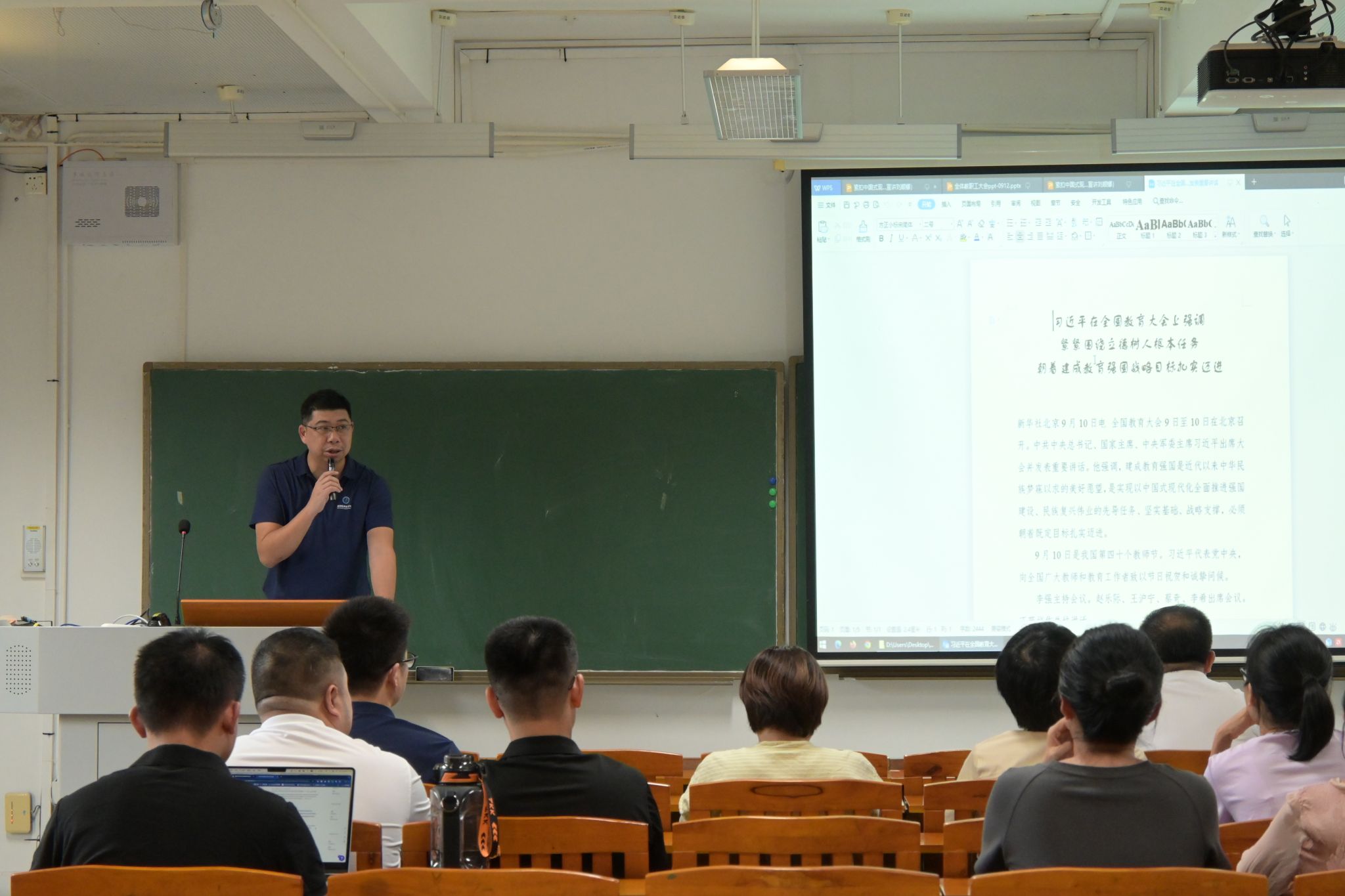 9月12日,威廉希尔体育在教学楼6C-401召开教职工大会开展师德师风教育工作。公司全体教职工出席本次会议,会议由公司党委副书记葛金虎主持。